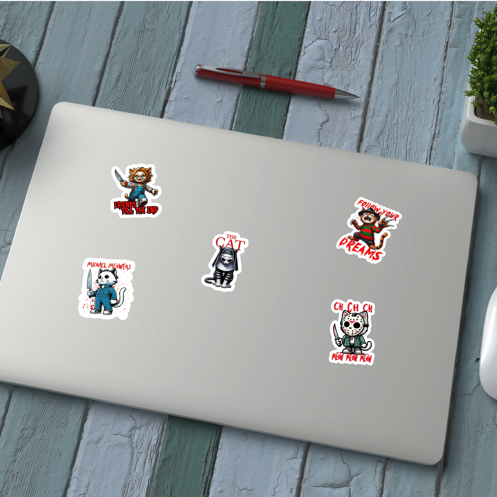 Add a touch of spooky fun to your collection with our Funny Cat Horror Movie Character Die-Cut Stickers! These playful cats bring humor and charm to the world of horror, making them the perfect decoration for your laptop, water bottle, notebook, or anywhere you need a bit of creepy cuteness. Choose your favorite horror film-inspired cat or get the entire set for maximum spooky flair! Made with high-quality vinyl, these stickers are durable, water-resistant, and sure to delight both cat lovers and horror fans alike.
